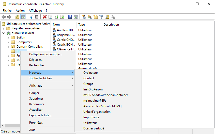 L’étape suivante a consisté à explorer les Groupes de Stratégies de Groupe (GPO). J’ai appliqué différentes politiques aux utilisateurs et aux UO pour améliorer la gestion et la sécurité du réseau. Ce projet m’a permis de découvrir la richesse des options offertes par les GPO pour administrer efficacement un environnement informatique.